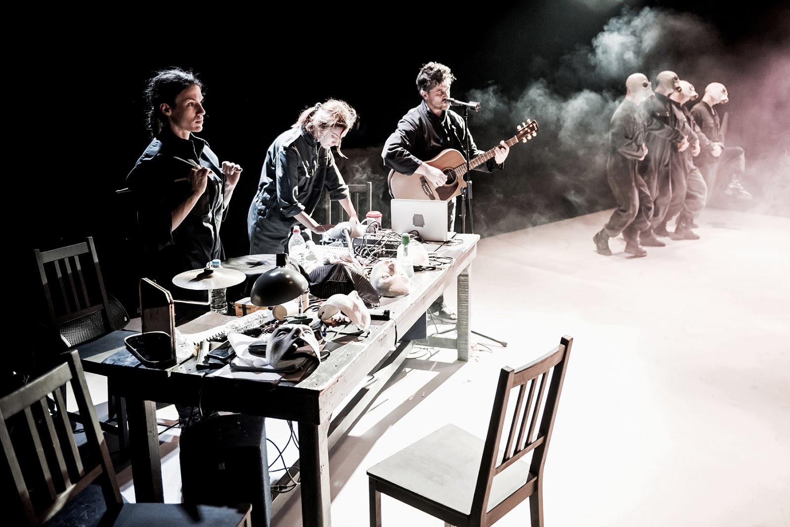 μπρεχτικότατες. Οι ηθοποιοί υπηρετούν με συνέπεια τα αιτούμενα απ’ τη σκηνοθεσία: Νίκος Γιαλελής, Χαρά Κότσαλη, Εμμανουήλ Πετράκης, Φελίς Τόπη. Θα ξεχωρίσω, πάντως, την αφοπλιστική αμεσότητα του Σίμου Κακάλα, τη γερή σχέση με το σανίδι του εκφραστικότατου, με πολύ καλή κίνηση Κωνσταντίνου Μωραϊτη και, πρώτον τη τάξει, τον Μιχάλη Βαλάσογλου με την επιβλητική φωνή -ο Φάτσερ του επιβάλλεται. Μια πολύ ενδιαφέρουσα σκηνική πρόταση που, προοδευτικά, με κέρδισε πλήρως και μια παράσταση που δικαιώνει την ύπαρξη και τον τίτλο της «Πειραματικής Σκηνής» του Εθνικού (Φωτογραφίες: Karol Jarek).